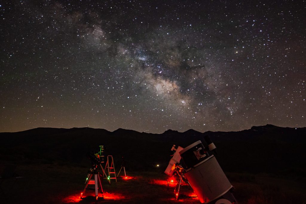 Observación con telescopios e interpretación del cielo nocturno en miradores de altura alejados de la contaminación lumínica en Sierra Nevada.